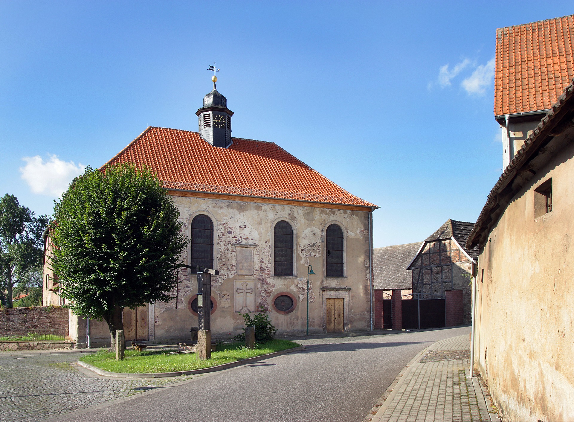 Die evangelische Dorfkirche entstand in den Jahren von 1697 bis 1700 im historischen Dorfkern, auf den Grundmauern der einstigen Godehardkapelle. Der auch Wissmannkirche genannte Bau wird umgeben von Gehöften sowie dem historischen Schul- und dem Pfarrhaus. Einst verantwortete der hier residierende königlich-preußische Amtmann Hermann von Wissmann überwiegend den Bau und die Unterhaltung des Gotteshauses.